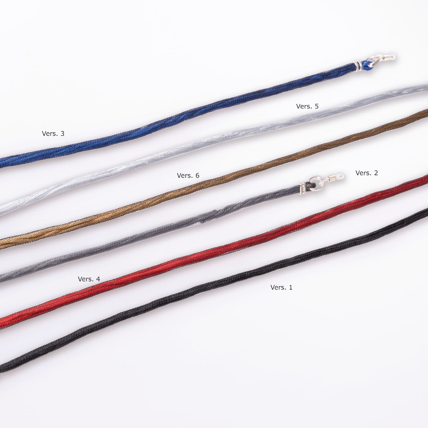 Farbige Brillenketten, sehr leicht, röhrenförmige Gewebeummantelung, mit Alu-Glanz,