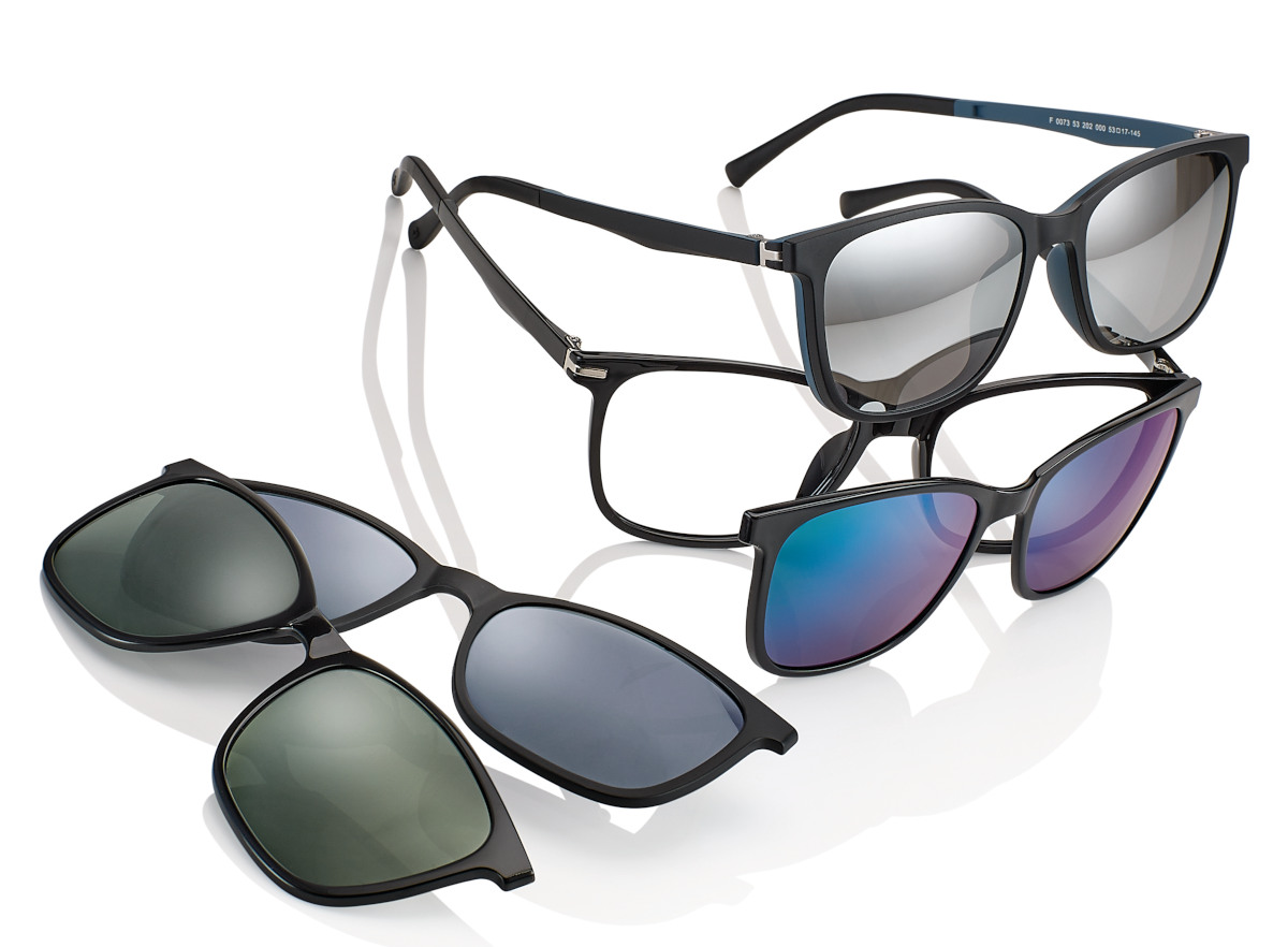 Inklusive 2 farblich passende magnetische Sonnenclips mit polarisierenden Gläsern (je ca. 6 g)
