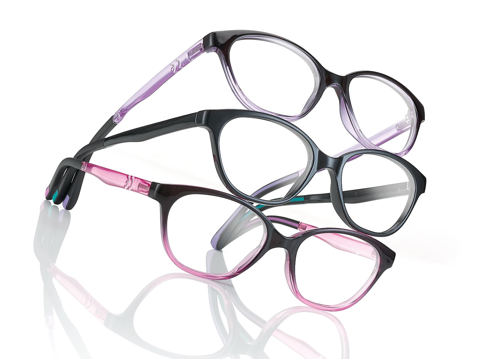 Active Colours Kinderfassungen sind flexibel und leicht aus TR90, die Bügelenden sind anpassbar und aus PPSU (einem thermoplastischen Hochleistungskunststoff).